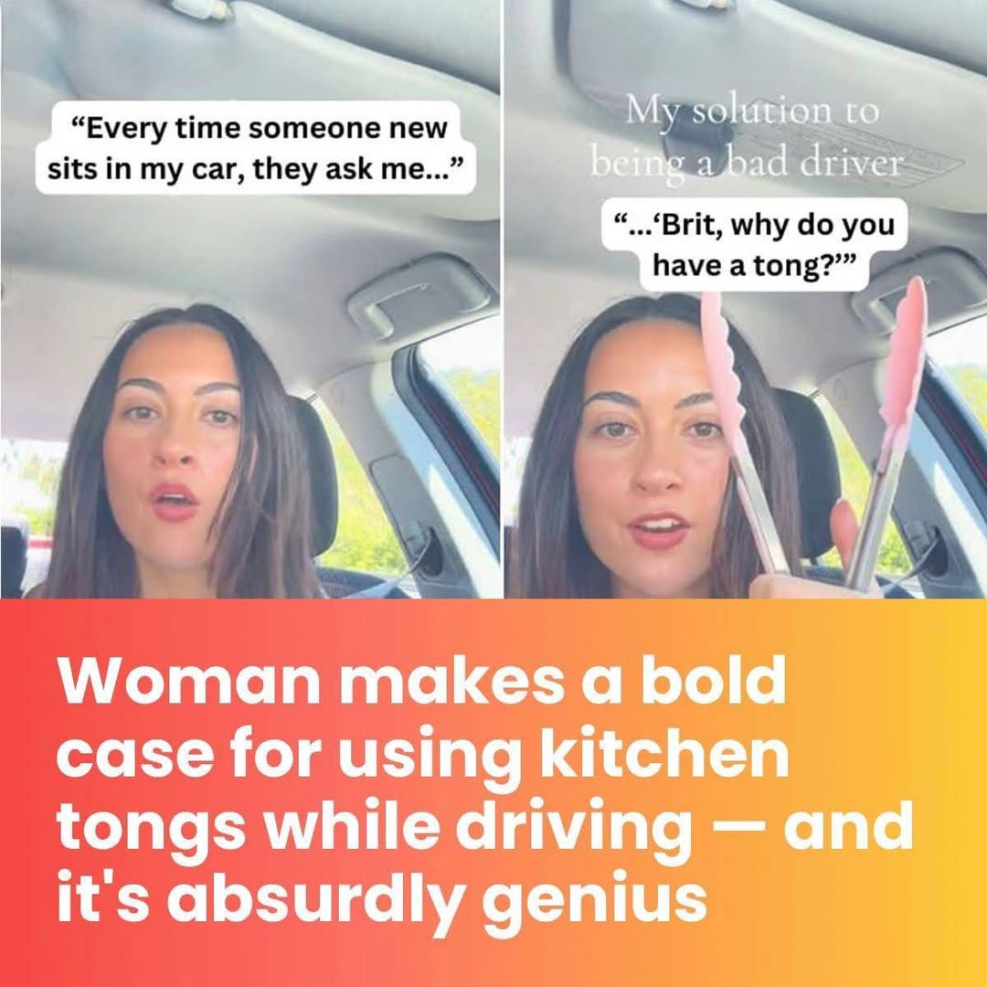 Woman presents compelling case for using kitchen tongs while driving, and her reasoning is surprisingly clever